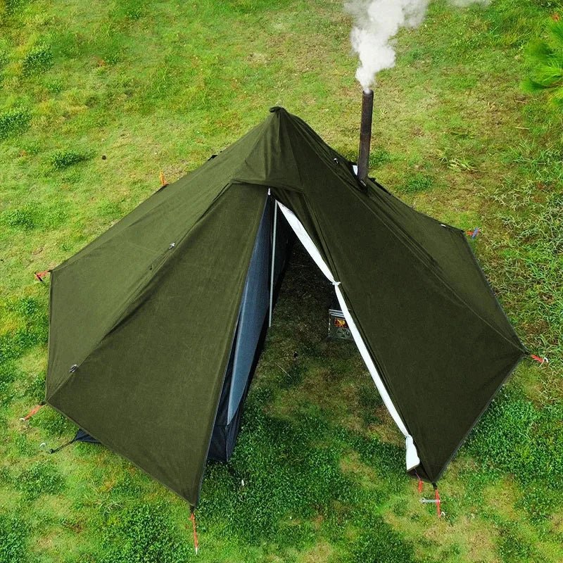 Plus qu’un simple abri, cette tente de camping est conçue pour votre bien-être. La fenêtre de cheminée ignifuge assure une ventilation optimale, évacuant l’humidité et régulant la température intérieure. Finies les nuits étouffantes, profitez d’un sommeil réparateur et d’un réveil en pleine forme pour profiter pleinement de vos aventures en plein air.