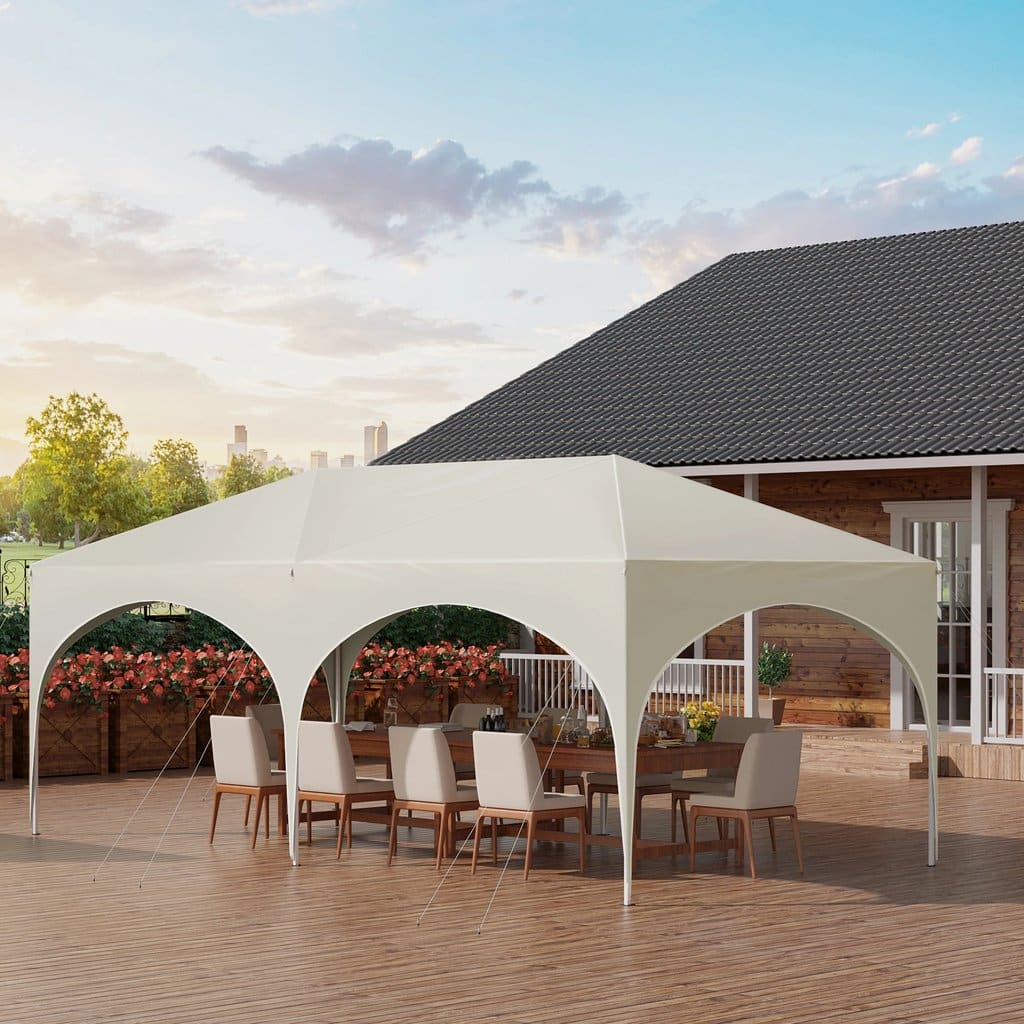 Gagnez du temps et de l’énergie avec le système de montage pop-up de notre tente de jardin. Dépliez-la simplement et fixez-la avec les piquets et cordes fournis. Aucun outil n’est nécessaire, ce qui rend l’installation rapide et accessible à tous. La tente pliante se range ensuite facilement dans son sac de transport pour un gain de place optimal.