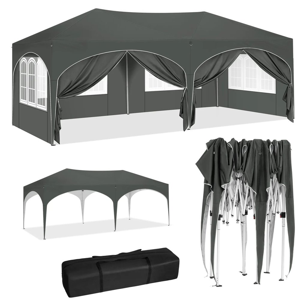 Adaptez votre tente extérieure à vos besoins grâce à ses 6 parois amovibles. Les 2 parois avec fermeture éclair et les 4 parois avec fenêtres offrent une grande flexibilité d’aménagement. Les rideaux ajoutent une touche d’élégance et d’intimité à votre espace de réception. Créez l’ambiance idéale pour chaque occasion.