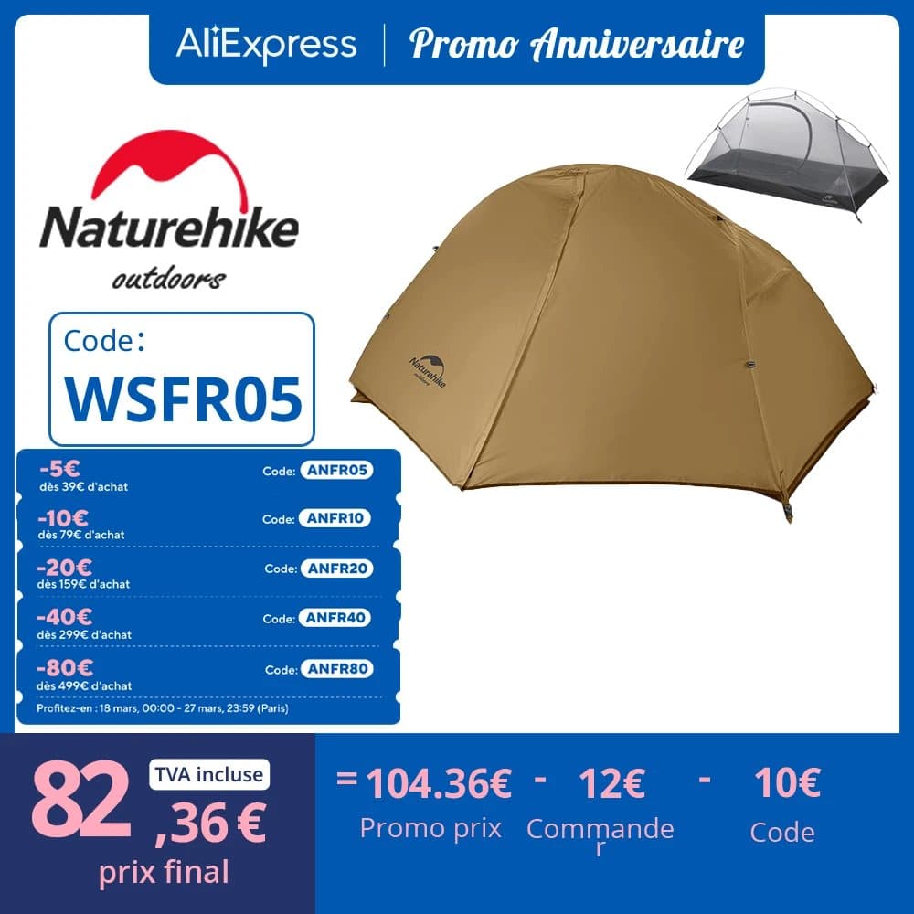 Malgré sa légèreté, cette tente légère offre un espace intérieur confortable pour une ou deux personnes. L’imperméabilité du nylon et du tapis de sol vous protège efficacement de l’humidité et des intempéries. Profitez d’un sommeil réparateur après une journée d’aventure, en toute sérénité.