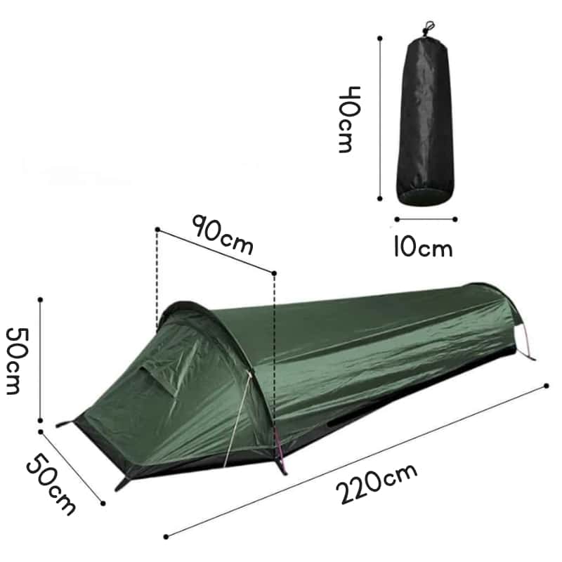 Avec son indice d’imperméabilité de 1000-1500 mm, cette tente imperméable vous garde au sec, même sous une pluie battante. Son design compact et ses dimensions de 220 x 50 x 50 cm offrent un espace suffisant pour une personne. Les matériaux robustes et durables garantissent une résistance optimale face aux éléments, tandis que sa légèreté, avec un poids de seulement 0,80 kg, facilite son transport lors de vos treks en altitude.