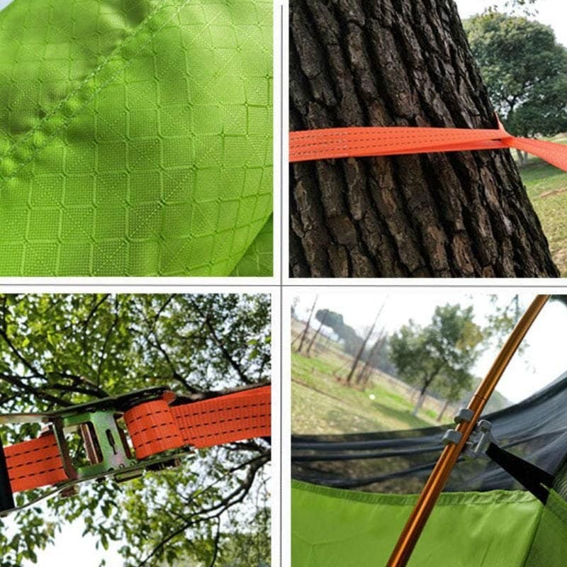 Conçue avec des matériaux de haute qualité, notre tente suspendue 1 personne offre une protection optimale contre les intempéries. Son double toit imperméable vous garde au sec, même en cas de forte pluie. L’isolation thermique est également assurée, vous garantissant des nuits confortables, quelle que soit la température extérieure. Dormez sereinement grâce à la structure robuste et stable de votre hamac-tente.